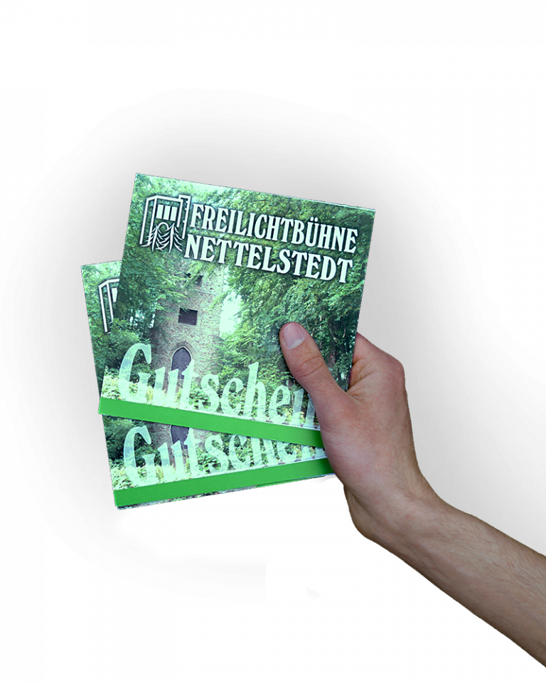 Unser Gutschein ist ein Wertgutschein und an der Tageskasse gegen Eintrittskarten für beliebige Vorstellungen der Freilichtbühne Nettelstedt einzulösen.